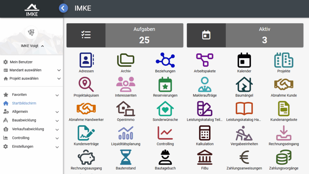 IMKE ist eine ERP Softwarelösung, welche den gesamten Lebenszyklus von Immobilienprojekten abdeckt – von der Projektentwicklung über Bauabwicklung und Controlling bis hin zu Vertrieb, Finanzplanung und Buchhaltung
